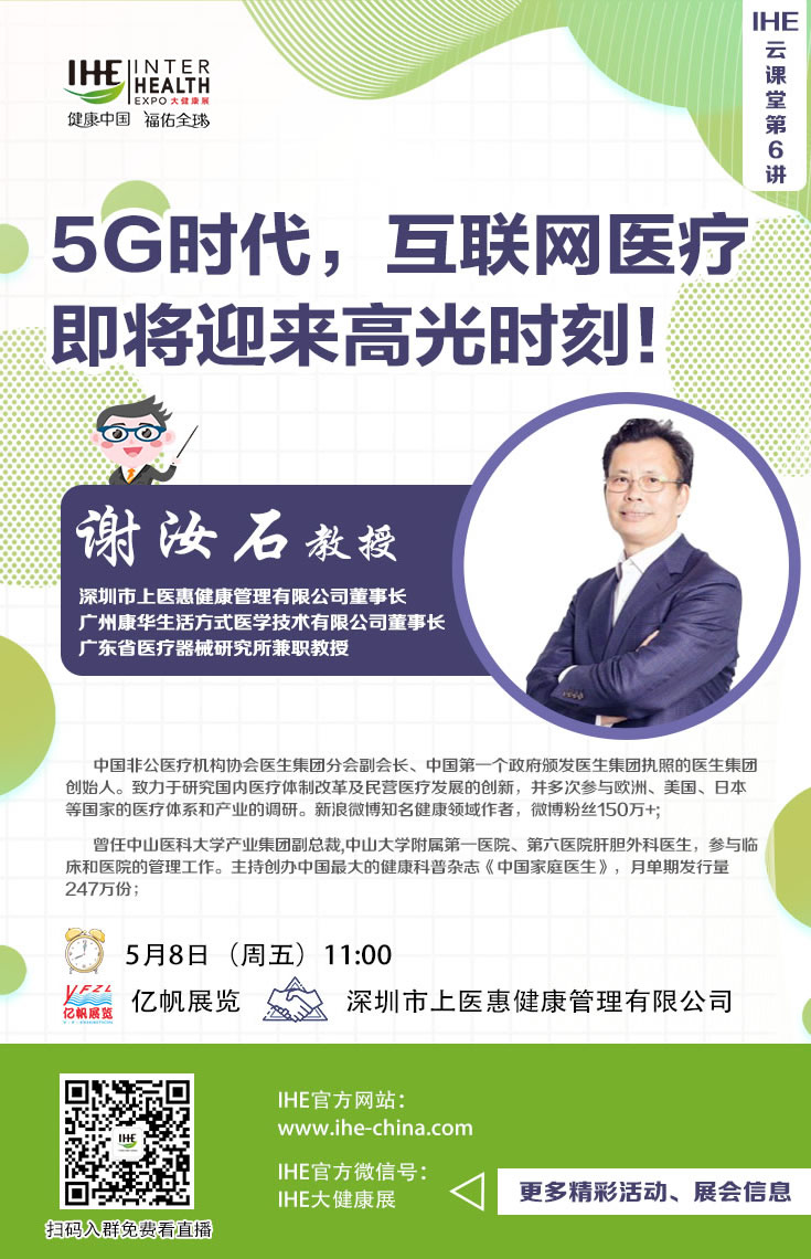 互聯(lián)網(wǎng)醫(yī)療為何在進去能快速發(fā)展起來?面對如此大的一個產(chǎn)業(yè)集群,我們改如何去切入?本期IHE China云課堂特邀深圳市上醫(yī)惠健康管理有限公司董事長、廣州康華生活方式醫(yī)學(xué)技術(shù)有限公司董事長、廣東省醫(yī)療器械研究所兼職教授謝汝石先生,縱論中國互聯(lián)網(wǎng)醫(yī)療行業(yè)的未來趨勢及新冠疫情對行業(yè)走向的影響。掃描下方二維碼觀看精彩回放!