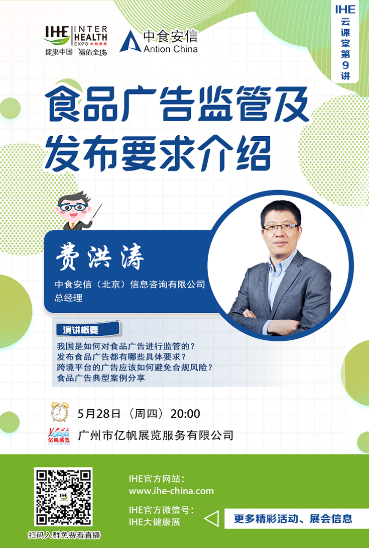 IHE大健康展云課堂第九講:食品廣告監管及發布要求介紹