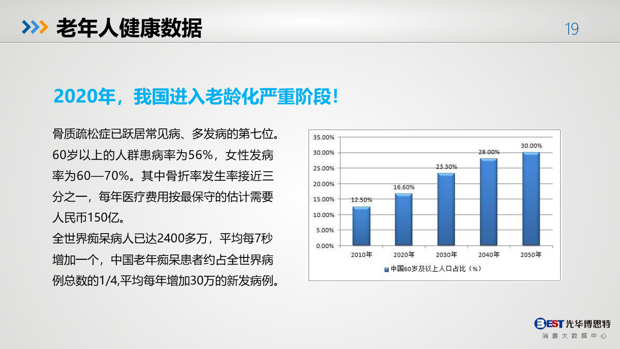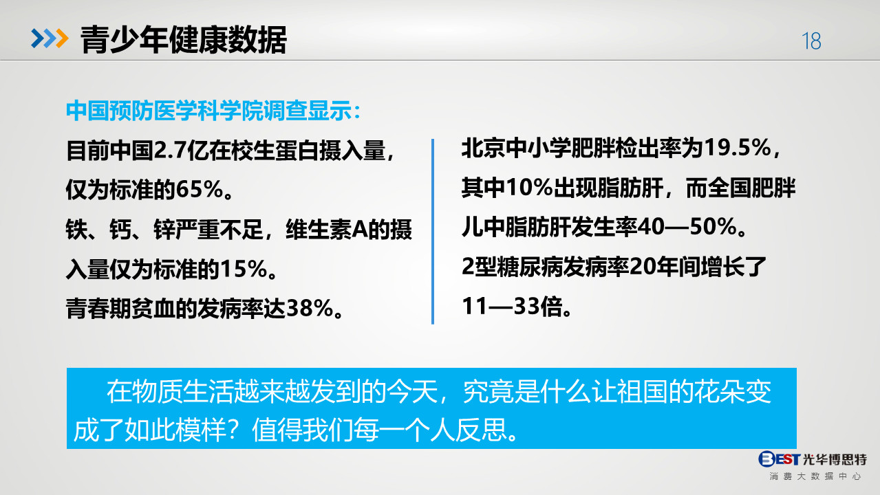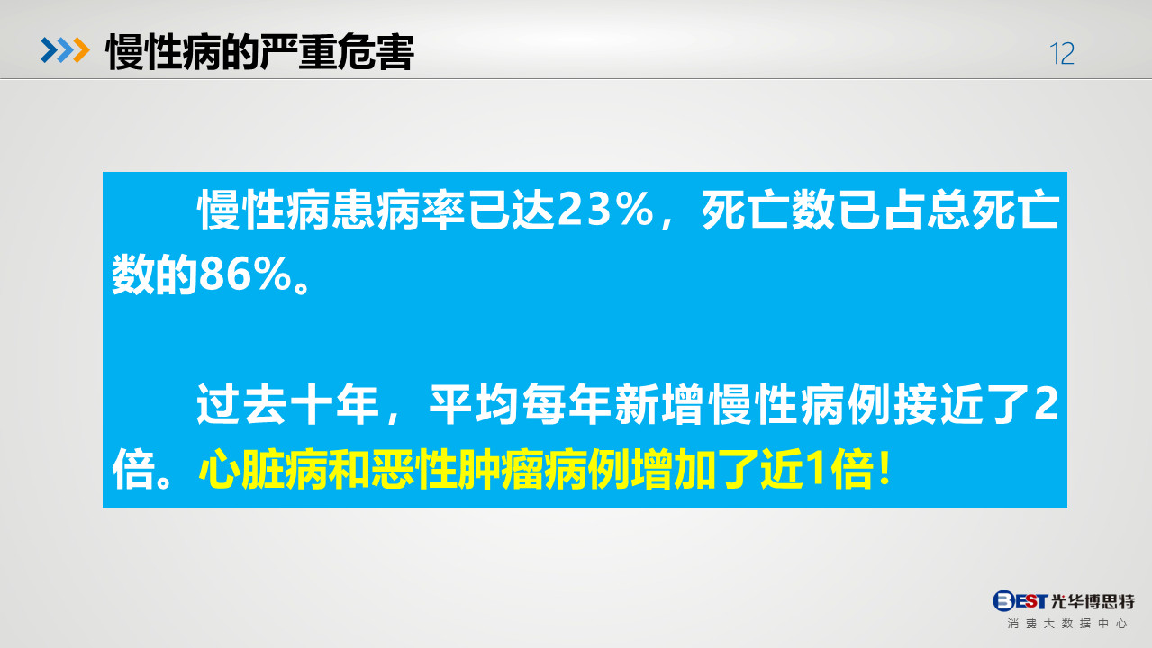 雖然國民健康問題嚴峻,但隨著消費升級、健康意識的提高利好大健康行業各領域的發展,先后經歷 “基本消費”向“高層消費”的轉變。創新是引領發展的第一動力,創新更是大健康行業持續發展的生命源泉。在疫情影響下的2020,大健康行業更應抓住此次機會,充分理解健康理念,為消費者帶來更好的體驗。