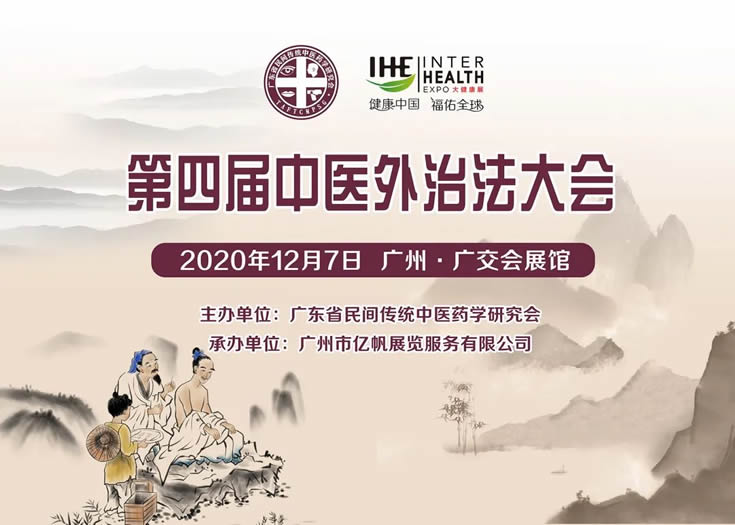 2020年12月6-8日,第29屆廣州國際大健康產業博覽會(IHE China 2020),將于廣州·廣交會展館舉辦。屆時,作為IHE China廣州國際大健康產業博覽會同期活動,2020第四屆中醫外治法大會也將在12月7日拉開帷幕。