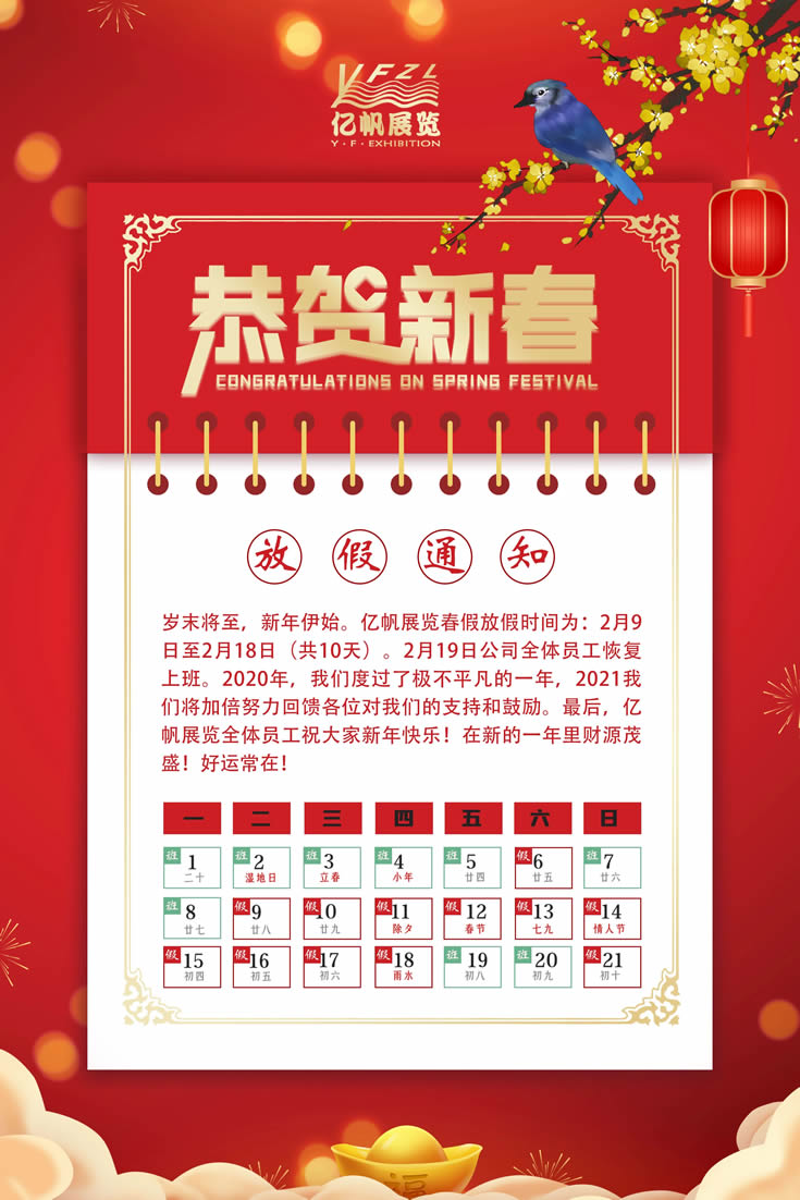 億帆展覽放假通知