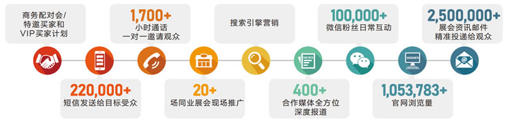 與國內外主流媒體及大型門戶網站、海內外行業專業媒體進行戰略合作,多種渠道全方位立體報道展會,保證參展商參展效果最大化。