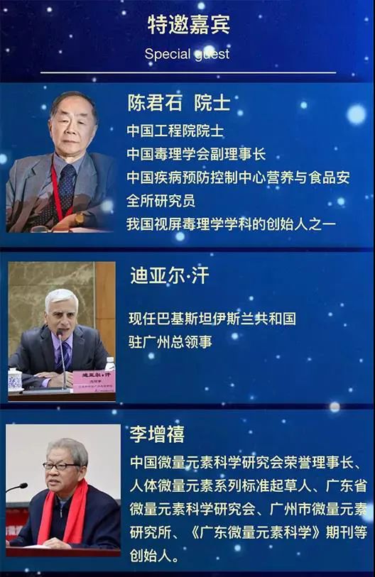 論壇將邀請中國工程院陳君石院士、巴基斯坦伊斯蘭共和國駐廣州總領事迪亞爾·汗閣下、衛生部微量元素與地方病重點實驗室王治倫主任、上海微量元素學會副理事長秦俊法教授、中國微量元素研究會副理事長、省學會秘書長王廣儀教授、英國皇家醫學院何月蓉院士等科學領域權威專家、學者及有政府部門領導蒞臨現場,探討微量元素科學領域最新研究成果,推進微量元素科研、應用及產業化,帶動健康產業協同發展。