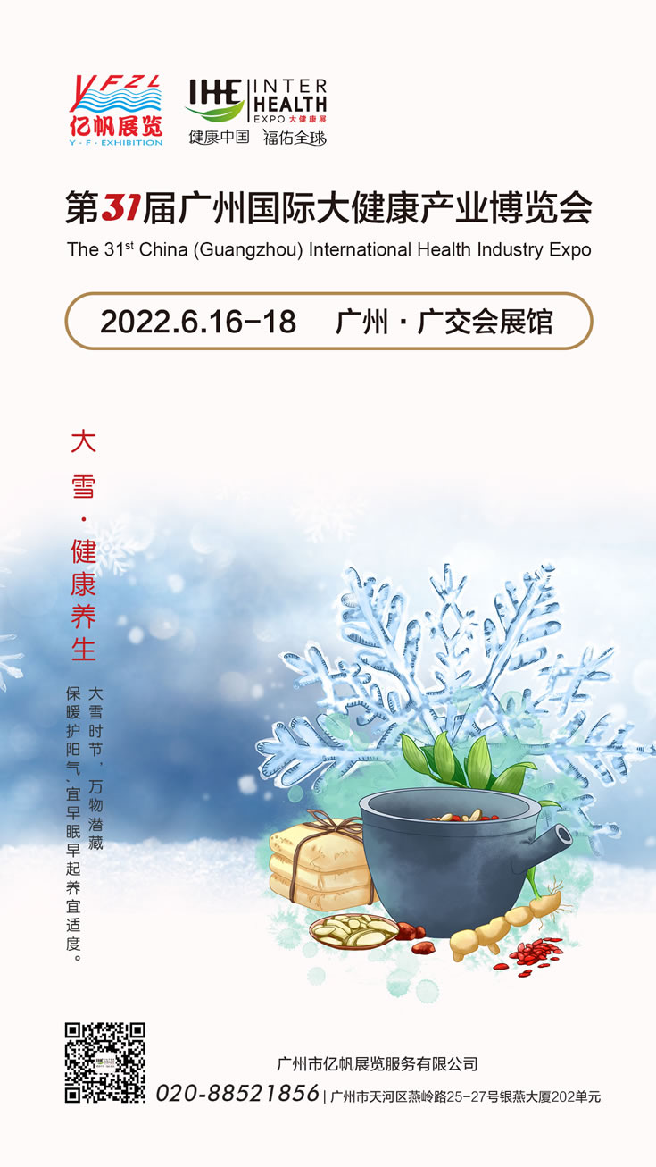 IHE China IHE第34屆廣州國際大健康產業博覽會將于2026年6月4-6日在廣州?廣交會展館舉行,大健康博覽會由廣州市億帆展覽服務有限公司主辦,是國內首個提出“大健康博覽會”概念。大健康展會已連續成功舉辦到第34屆,已成為亞太地區頗具規模的大健康博覽會,2023年榮獲廣州市商務局頒發“成功舉辦18年”獎牌!。