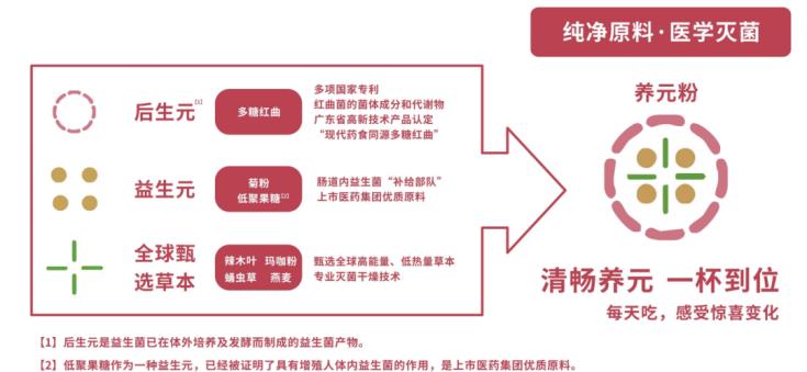 核心成分:“多糖紅曲”——是食用益生菌“紅曲菌”的菌體成分和代謝產物,是優質后生元。