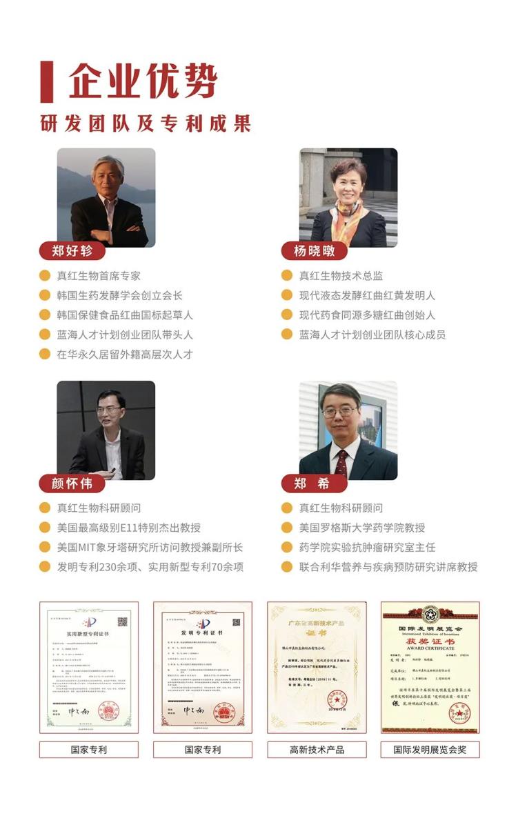 由韓國生藥發酵協會創立會長鄭好軫先生帶領中韓美國際團隊,經過七年的反復實驗,終于研發出最新一代的后生元產物,并命名為“第三代多糖紅曲”。在我國獲得多項國家專利和廣東省高新技術產品認定。福廣惠養元粉由國家高新技術企業——廣東省真紅生物科技有限公司研發的以“第三代多糖紅曲”為核心原料,甄選全球草本經過科學配比生產的輕卡養生產品。經過數萬名使用者親身體驗,好評如潮。