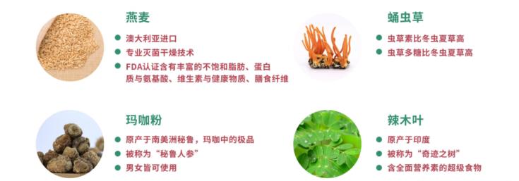 福廣惠養元粉精選全球七種原料:后生元(專利成分——多糖紅曲),益生元(菊粉、低聚果糖),甄選草本(燕麥、黑瑪咖、蛹蟲草和辣木葉)。除了營養,什么都不添加,每天放心吃。養元固本,找回身體的元氣狀態。