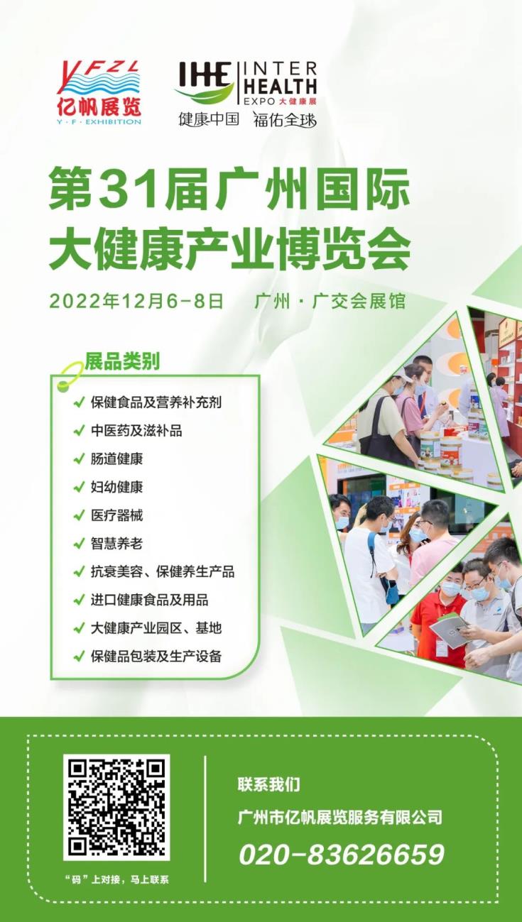 IHE大健康展會包含:健康食品及營養(yǎng)補充劑、 進口健康食品及用品、 中醫(yī)藥及滋補品、 氫健康產(chǎn)品及高端水、 智慧養(yǎng)老/健康管理、 家庭醫(yī)療設(shè)備、 抗衰美容及健康睡眠、 婦幼健康、 益生菌/腸道健康、 跨境醫(yī)療及醫(yī)療旅游、 生物制品及抗衰美容及睡眠健康、 體育健康、 大健康產(chǎn)業(yè)園區(qū)/基地、 包裝及生產(chǎn)設(shè)備 等展覽專區(qū)。IHE大健康展會期待您的到來!
