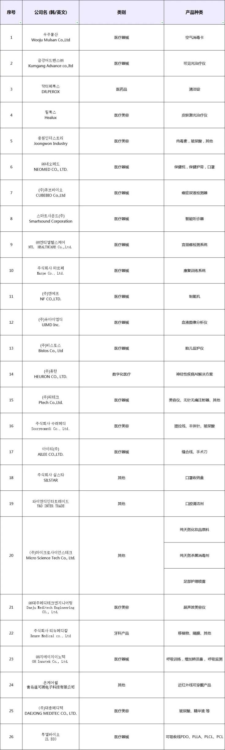 以下為韓國參會企業: