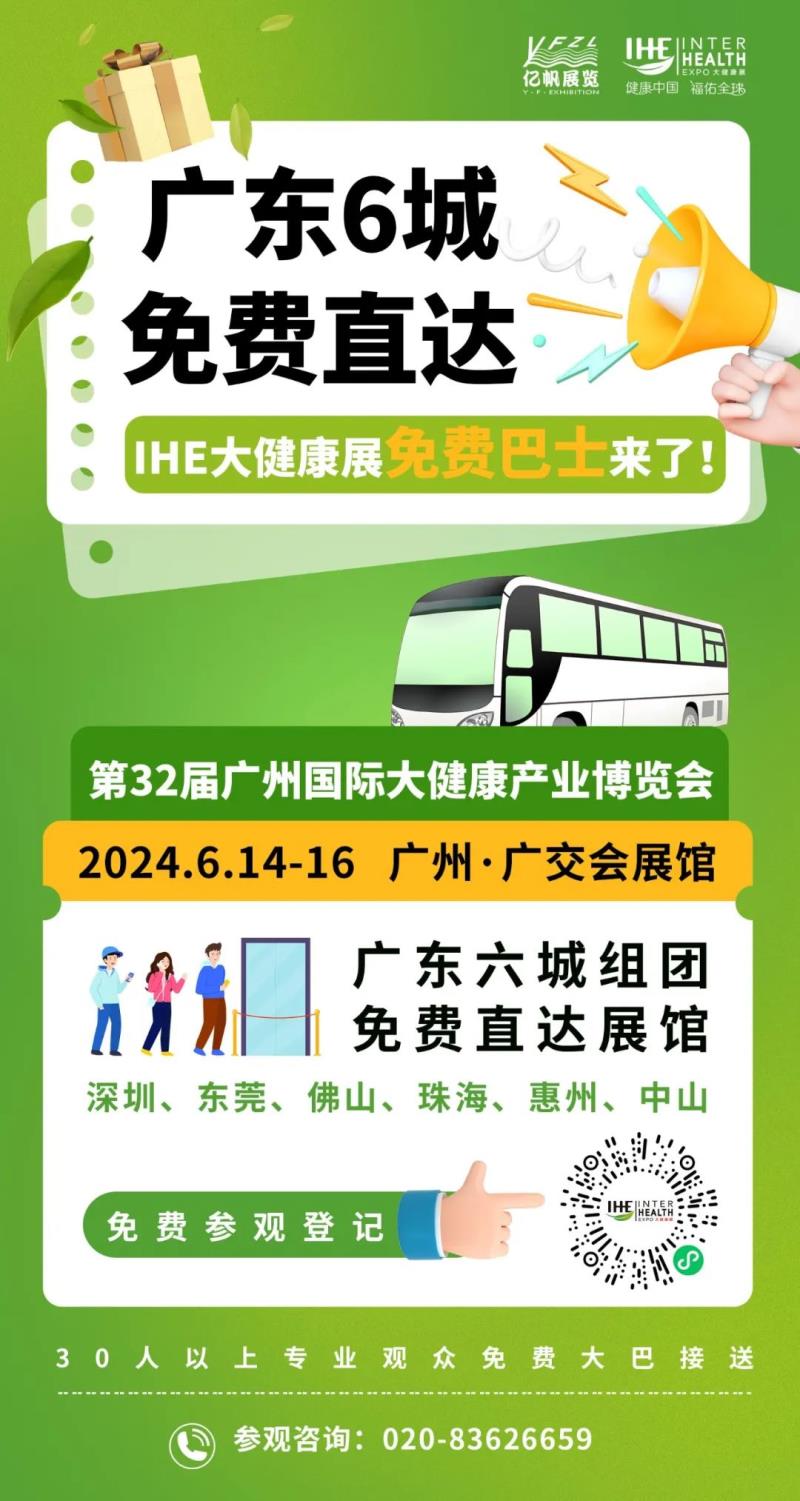 第32屆廣州國際大健康產業博覽會將于2024年6月14-16日在廣州·廣交會展館隆重舉辦。本屆展會展覽面積50000+㎡,匯聚1500+家國內外大健康領軍企業和新銳品牌。展會同期還將舉辦多場論壇會議、商務配對、直播帶貨等專業前沿活動!!!
