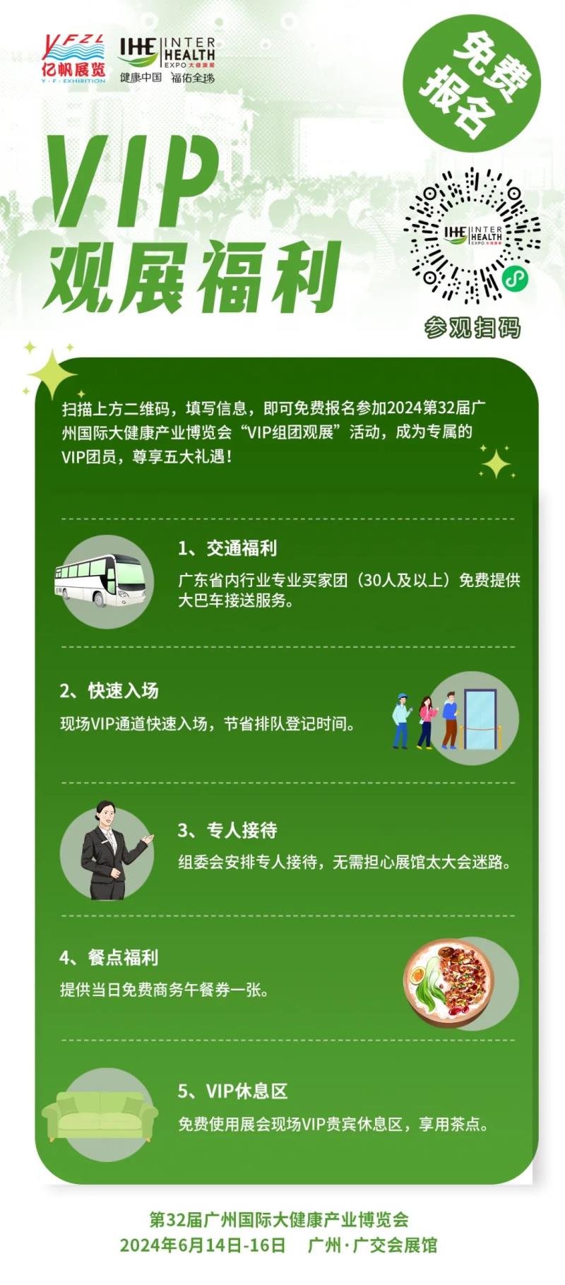 第32屆廣州國際大健康產業博覽會將于2024年6月14-16日在廣州·廣交會展館隆重舉辦。本屆展會匯聚1000+家國內外大健康領軍企業和新銳品牌。展會同期還將舉辦多場論壇會議、商務配對、直播帶貨等專業前沿活動!!!