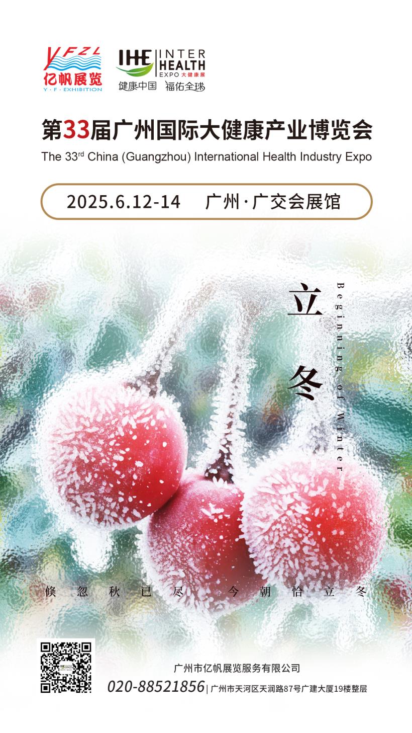 IHE China IHE第34屆廣州國際大健康產業博覽會將于2026年6月4-6日在廣州?廣交會展館舉行,大健康博覽會由廣州市億帆展覽服務有限公司主辦,是國內首個提出“大健康博覽會”概念。大健康展會已連續成功舉辦到第34屆,已成為亞太地區頗具規模的大健康博覽會,2023年榮獲廣州市商務局頒發“成功舉辦18年”獎牌!。