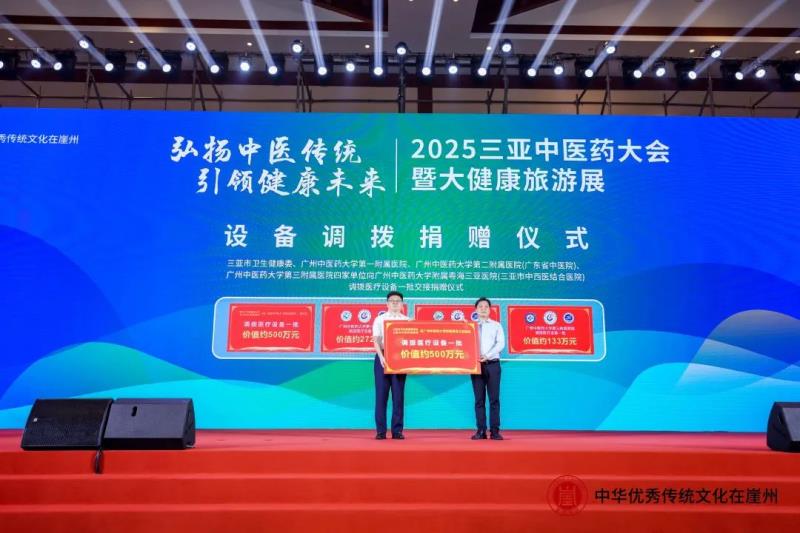 海南省衛生健康委副主任潘文利指出,自貿港的政策制度優勢為海南中醫藥事業的發展提供了前所未有的機遇,將加大政策支持,完善中醫藥服務體系,推動中醫藥傳承創新。廣州中醫藥大學黨委書記陳文鋒提出,將借助附屬粵海三醫院的合作為契機,大力培育中醫藥新質生產力,加快推進國家中醫藥傳承創新發展試驗區“三亞樣板”內涵建設;三亞市人民政府副市長何世剛表示,將利用三亞獨特的區位優勢和開放政策,拓展國際合作空間,共同探索中醫藥國際化的新路徑。作為三亞中醫藥對外合作的重要成果體現,會上舉行了揭牌儀式和設備調撥捐贈儀式,三亞市、廣州中醫藥大學雙方領導共同為三亞市中西醫結合醫院、廣中中醫藥大學附屬粵海三亞醫院、廣州中醫藥大學海南醫院進行揭牌。三亞市衛生健康委、廣州中醫藥大學第一、第二、第三附屬醫院共同向廣州中醫藥大學附屬粵海三亞醫院調撥捐贈價值約1500萬元的醫療設備。