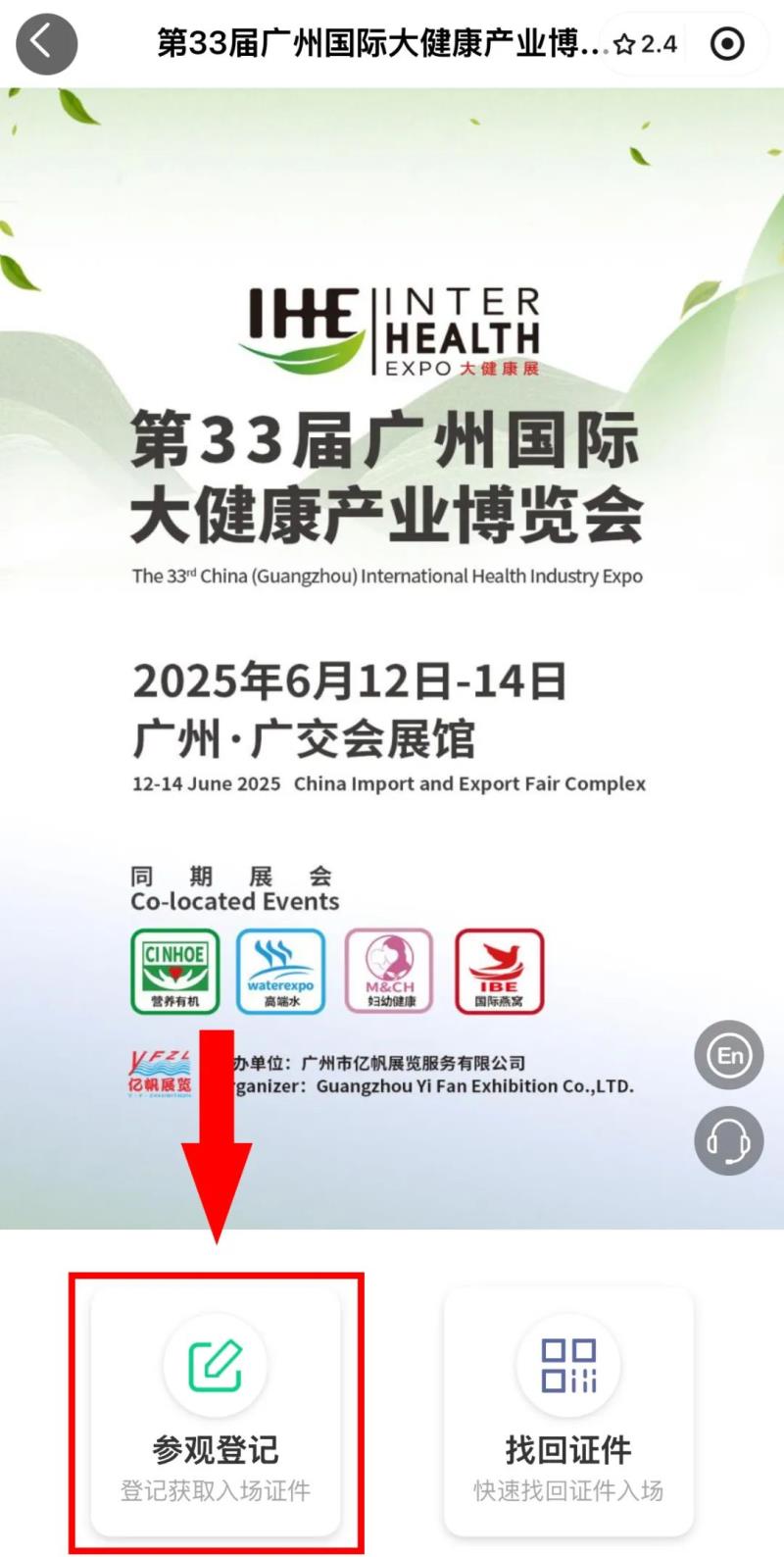01掃碼關注公眾號STEP1:掃碼關注展會公眾號“IHE廣州大健康展”。 |