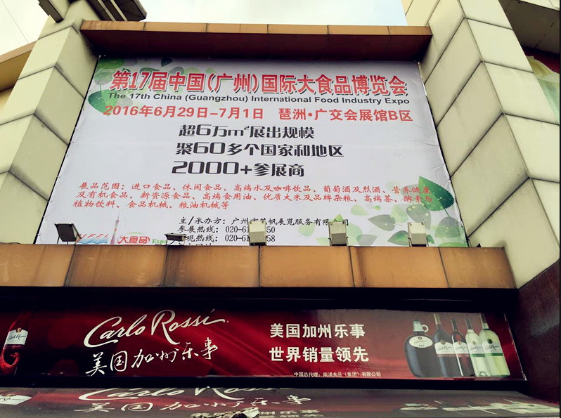 三一國際食品城正門巨幅宣傳照在三一國際食品城大規模宣傳推廣“2016第17屆中國(廣州)國際大食品產業博覽會”