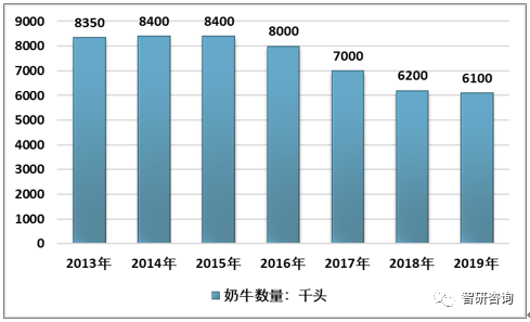 2013-2019年中國奶牛數量情況