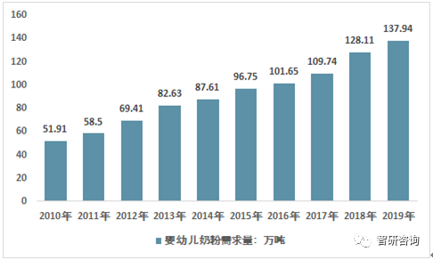 2010-2019年我國嬰幼兒奶粉需求量情況