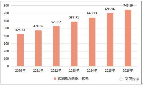 2020-2026年中國標準配方奶粉零售規模預測