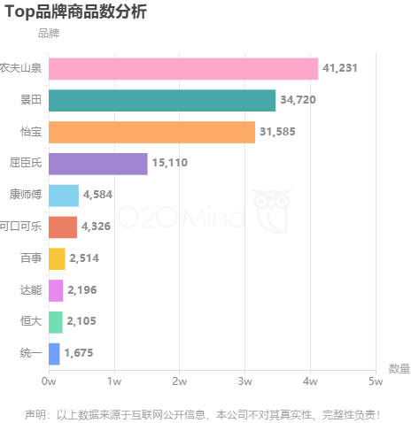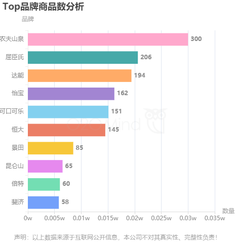 ▲ 深圳盒馬平臺各飲用水品牌商品數量