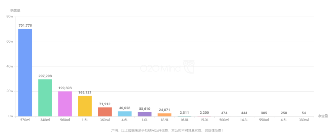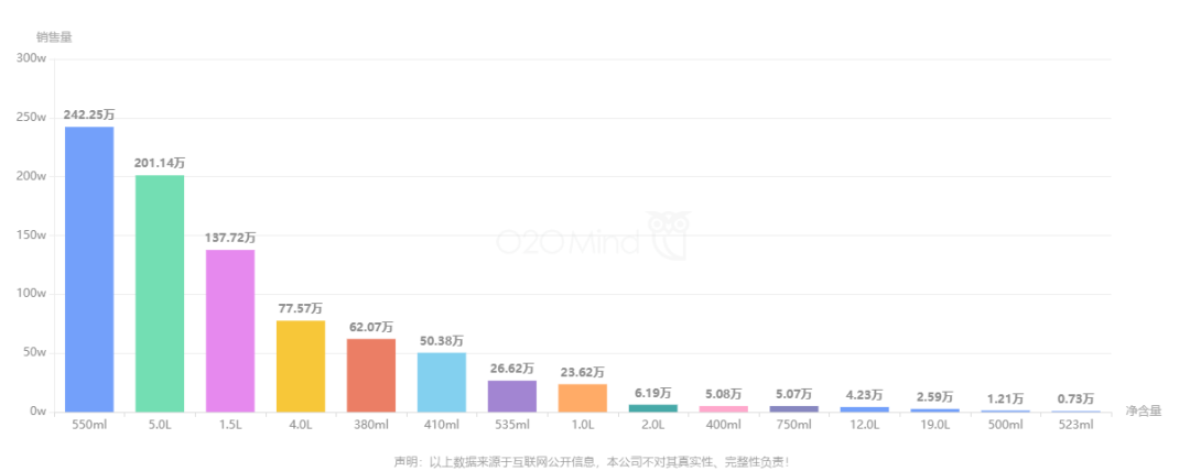 ▲2021年3月景田不同規格飲用水O2O銷量(不完全統計)