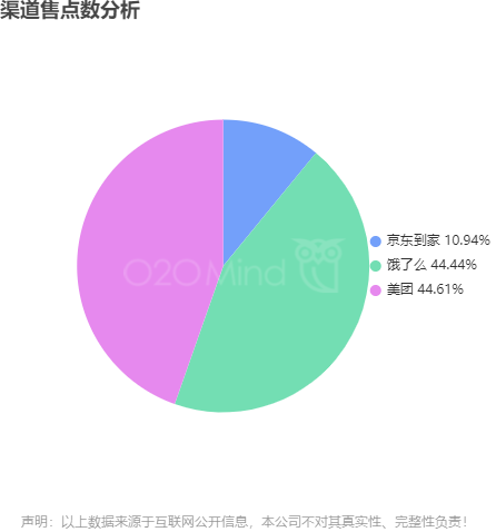 據O2OMind數據顯示,在三大O2O平臺(餓了么、美團、京東到家)中,美團銷售包裝飲用水的商家數最多,其次是餓了么,兩大外賣平臺包裝飲用水商家數量占比超80%。