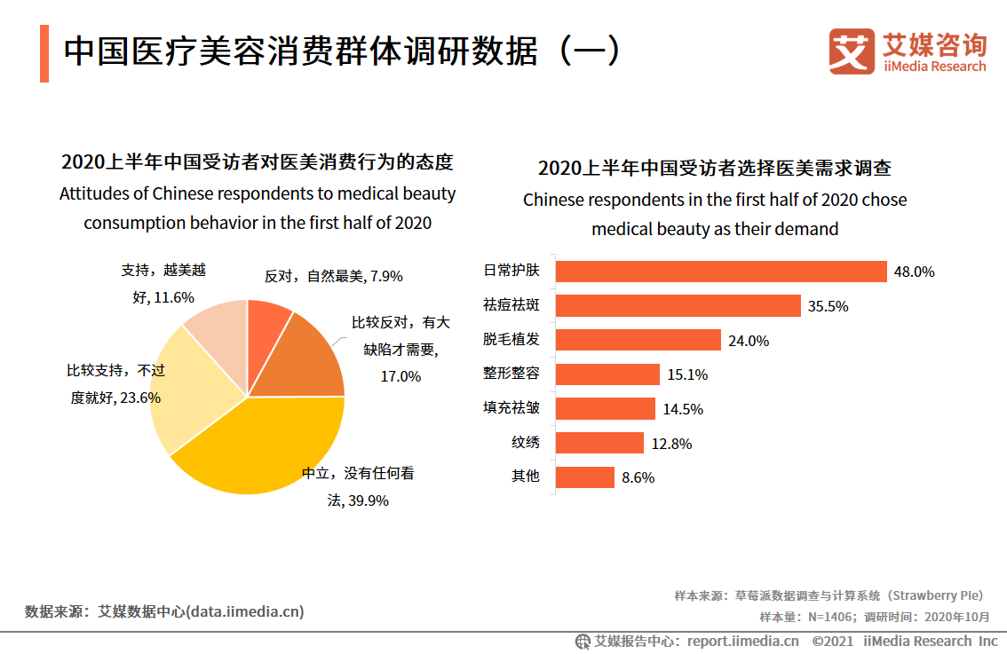 數(shù)據(jù)顯示,近五成受訪者選擇醫(yī)美的需求是日常護(hù)膚,祛痘祛斑也成為眾多消費(fèi)者選擇醫(yī)美的原因。艾媒咨詢分析師認(rèn)為,中國(guó)人均可支配收入提升、社會(huì)審美度的日益提升,醫(yī)美需求逐步提升。日常護(hù)膚、祛痘祛斑等輕醫(yī)美項(xiàng)目則憑借其快捷性、安全性等特點(diǎn),成為大眾接觸醫(yī)美項(xiàng)目的門檻產(chǎn)品。