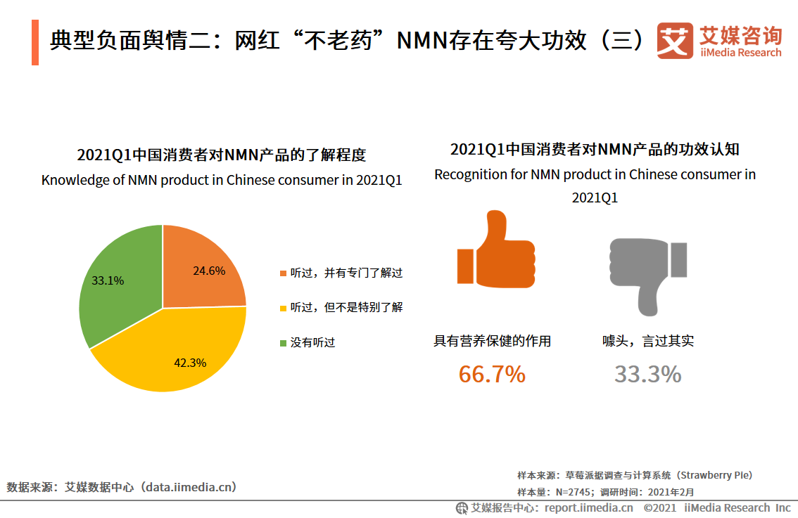 盡管NMN產(chǎn)品一度引起網(wǎng)民熱議風(fēng)潮,但是真正了解過NMN產(chǎn)品的消費(fèi)者卻不多,僅有24.6%,而且在了解過NMN產(chǎn)品的消費(fèi)者中,有超過3成認(rèn)為該產(chǎn)品僅是噱頭。艾媒咨詢分析師認(rèn)為,隨著目前中國(guó)市場(chǎng)上已經(jīng)對(duì)NMN產(chǎn)品的過度宣傳進(jìn)行了整改,為消費(fèi)者營(yíng)造了一個(gè)理性消費(fèi)的市場(chǎng)環(huán)境,短期可能會(huì)影響到消費(fèi)者的消費(fèi)欲望,但長(zhǎng)遠(yuǎn)來說,對(duì)抗衰老、保健養(yǎng)生類的產(chǎn)品將會(huì)成為市場(chǎng)追捧的對(duì)象。