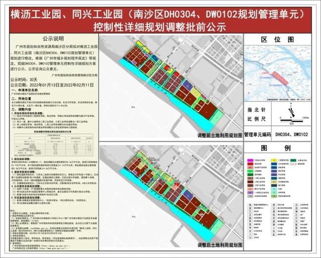 大洋網(wǎng)訊 記者從南沙區(qū)獲悉,由南沙產(chǎn)業(yè)園管理局組織開(kāi)展的橫瀝工業(yè)園、同興工業(yè)園(南沙區(qū)DH0304、DW0102規(guī)劃管理單元)控制性詳細(xì)規(guī)劃調(diào)整方案開(kāi)始批前公示,在廣州市規(guī)劃和自然資源局網(wǎng)站以及南沙區(qū)人民政府網(wǎng)站上可查詢相關(guān)信息。