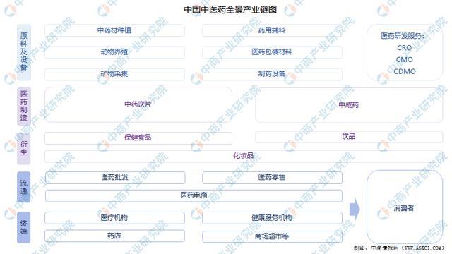 中醫藥行業產業鏈包含中藥原材料種植、醫藥制造、醫藥商業、第三方物流和醫藥零售等,最后到達終端消費者。中藥制造中最重要的三個環節是中藥材、中藥飲片和中成藥。中藥材是指未經加工或未制成成品,可供制藥的中藥原料,通常來自天然植物、動物和礦物;中藥飲片是指經過加工炮制的中藥材,可直接用于調配或制劑;中成藥是以中藥材為原料,在中醫藥理論指導下,為了預防及治療疾病的需要,按規定的處方和制劑工藝將其加工制成一定劑型的中藥制品,是經國家藥品監督管理部門批準的商品化的一類中藥制劑。