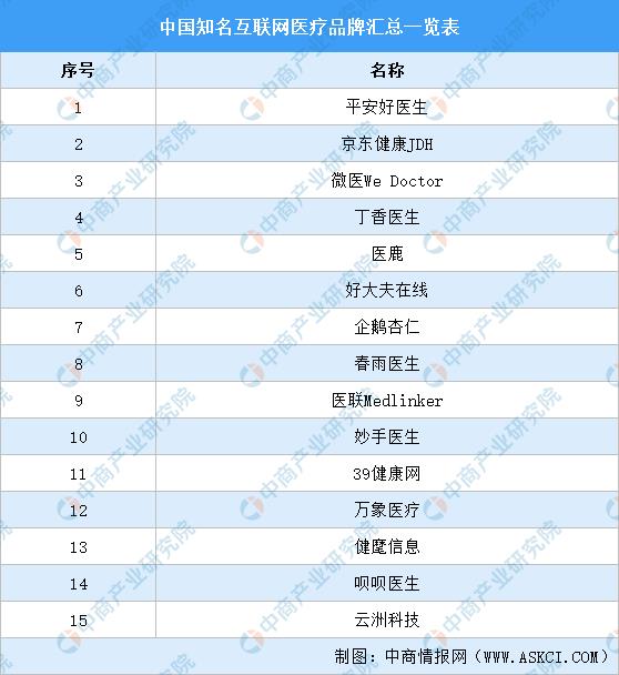 下圖為我國知名互聯網醫療品牌匯總一覽表: