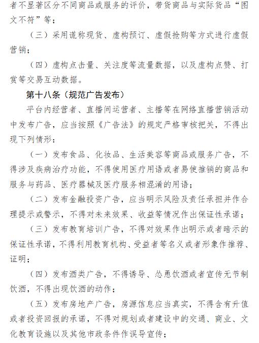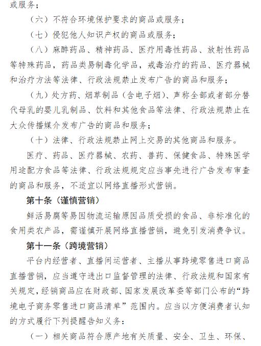 在網絡直播營銷活動中醫療、藥品、醫療器械、農藥、獸藥、保健食品、特殊醫學用途配方食品等法律、行政法規規定應當事先進行廣告發布審查的商品和服務,不適宜以網絡直播形式營銷。