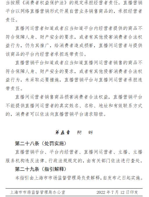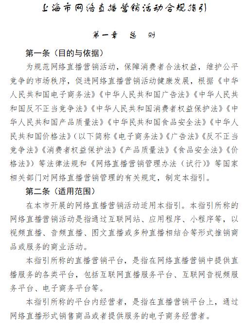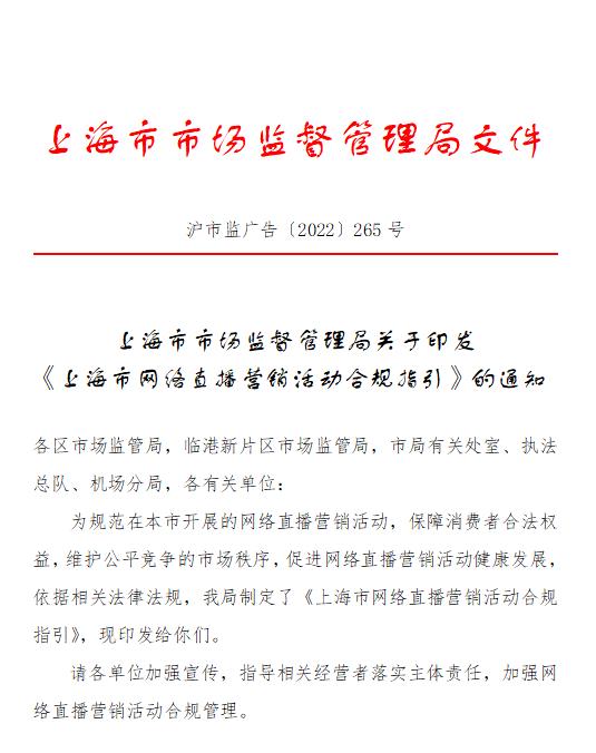 日前,上海市市場監管局發布《上海市網絡直播營銷活動合規指引》(以下簡稱“《指引》”),旨在規范網絡直播營銷活動,保障消費者合法權益,維護公平競爭的市場秩序,促進網絡直播營銷活動健康發展。