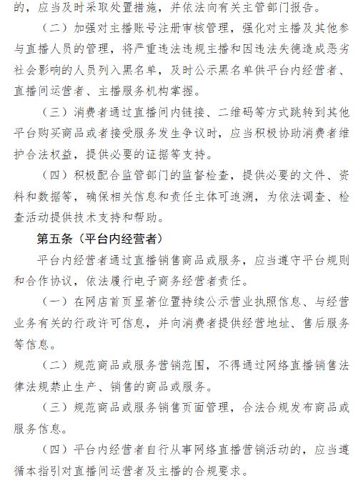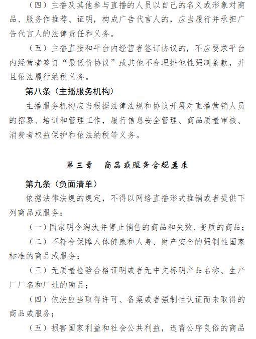 《指引》不僅明確了5類網絡直播主體責任內容(包括建立主播黑名單制度等);同時列明了網絡直播營銷商品(服務)的10項負面清單等。其中食品、保健食品等成為重點關注的內容。