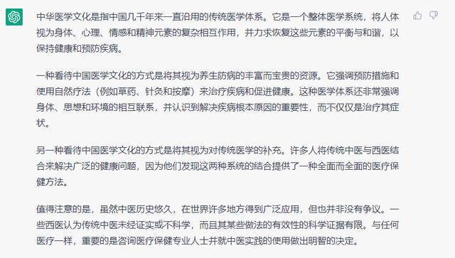 可能是由于翻譯的問題,直接理解成了“如何看待中醫文化”,不過給出答案還是有點子智慧的,指出了中醫文化的目標是“保持健康和預防疾病”。