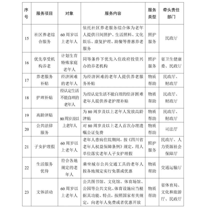 【政策速覽】四川省最新發布23項基本養老服務清單