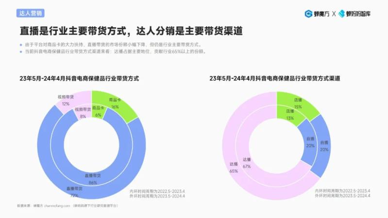 ? top50品牌達(dá)人矩陣呈金字塔型分布,小尾部達(dá)人數(shù)量最多,占比超8成,但超7成的銷售額由腰部以上達(dá)人貢獻(xiàn),該達(dá)人群體具有較大的影響號(hào)召力以及優(yōu)秀的內(nèi)容創(chuàng)作能力。保健品行業(yè)帶貨達(dá)人類型主要以時(shí)尚&顏值達(dá)人/知識(shí)教育達(dá)人/海外旅居達(dá)人的為主,通過(guò)這些符合行業(yè)調(diào)性達(dá)人的自用分享、專業(yè)科普等途徑建立起消費(fèi)者的信任,從而進(jìn)行高效轉(zhuǎn)化。