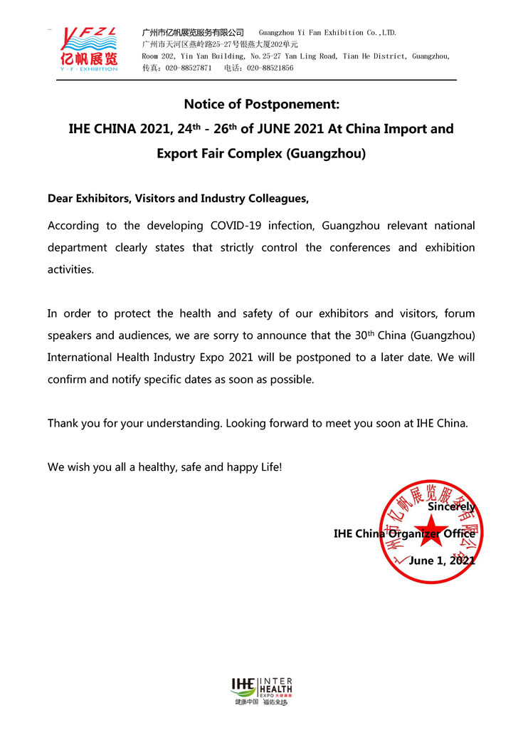 Notice: IHE China 2021 Postpone to September 24