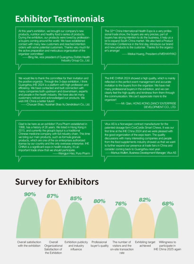 Sincere thanks to all exhibitors and buyers for their strong support of this exhibition! Looking forward to see you again at the 33rd China (Guangzhou) International Health Industry Expo held at the China Import and Export Fair Complex from June 12-14, 2025!
